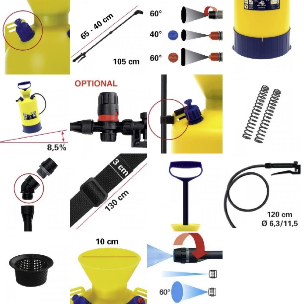 A szórófej cserélhető és állítható, így a permet szórása igazítható a feladathoz: lehet finom ködszerű vagy célzott, erősebb sugár. A szórószár toldási lehetősége nagyban megnöveli a kezelési rugalmasságot, és segít elérni a nehezebben hozzáférhető részeket. A 3 bar maximális nyomás mellett akár 4,5 méteres magasságba is feljut a permet, ami alkalmassá teszi magasabb fák, bokrok kezelésére is.