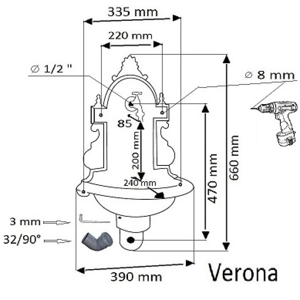 A legtöbb Verona falikút alján kialakított vízgyűjtőmedence található, amelyhez opcionálisan dekoratív rács is rendelhető. Ez nem csak esztétikus, hanem megkönnyíti a tisztántartást is.