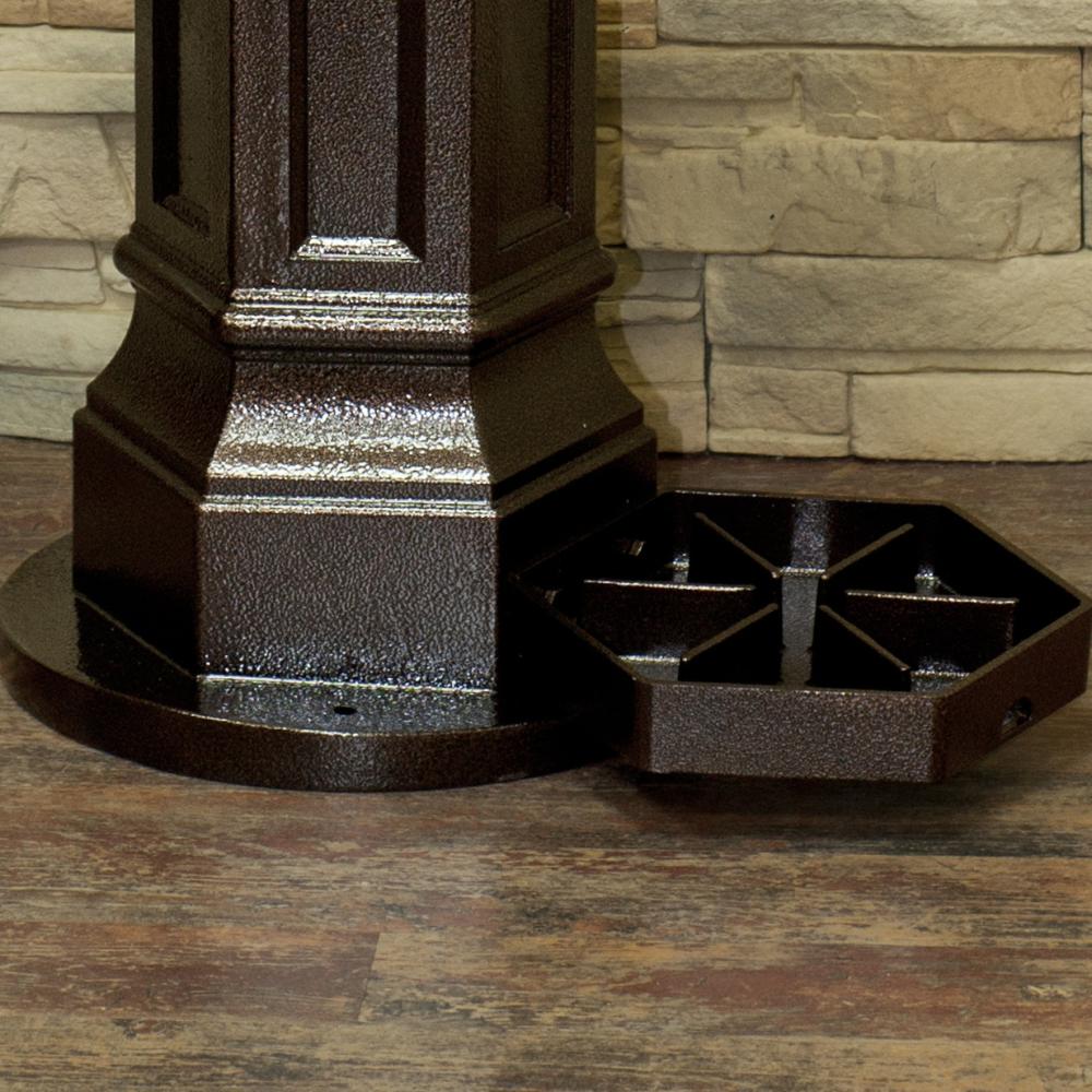 A kerti kút saját gyártásunk, anyaga alumínium öntvény, ezért 100%-ban rozsdamentes. A festése ellen áll minden szélsőséges időjárási körülménynek. Üzembe helyezhető kültérre és beltérre egyaránt. A hatszögletű állókút díszes ívei faragott hatást keltenek. A díszkutak bekötéséhez flexibilis vízbekötő csövet használjon. A kerti kút betonhoz való rögzítése javasolt, ehhez színre festett csavart biztosítunk. A kút felső kalap része leszerelhető, ezért könnyen tudja téliesíteni, illetve a csapot betonrögzítés után belülről fixálni vagy oldani. Ha a kutat két csappal vagy két vödörtartóval szeretné felár és előleg ellenében kivitelezzük.