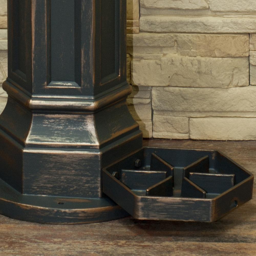 A kerti kút saját gyártásunk, anyaga alumínium öntvény, ezért 100%-ban rozsdamentes. A festése ellen áll minden szélsőséges időjárási körülménynek. Üzembe helyezhető kültérre és beltérre egyaránt. A hatszögletű állókút díszes ívei faragott hatást keltenek. A díszkutak bekötéséhez flexibilis vízbekötő csövet használjon. A kerti kút betonhoz való rögzítése javasolt, ehhez színre festett csavart biztosítunk. A kút felső kalap része leszerelhető, ezért könnyen tudja téliesíteni, illetve a csapot betonrögzítés után belülről fixálni vagy oldani. Ha a kutat két csappal vagy két vödörtartóval szeretné felár és előleg ellenében kivitelezzük.