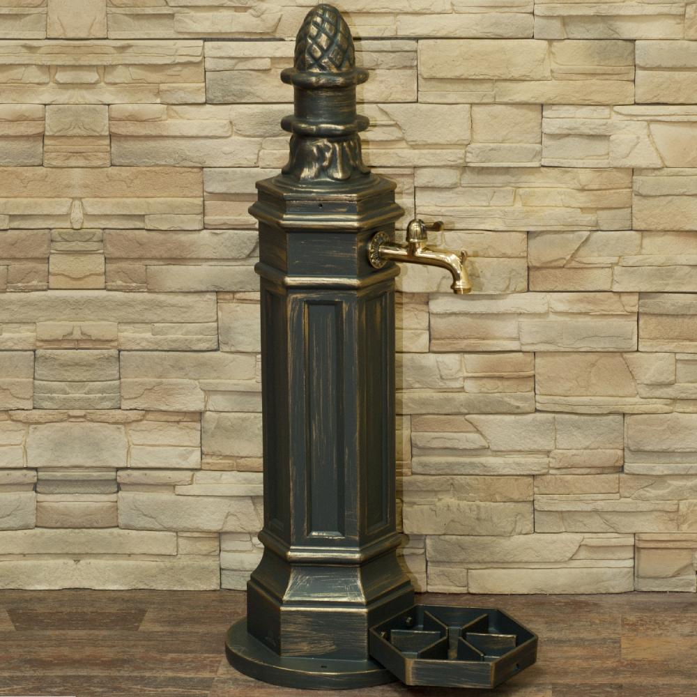 Antik arany | Saját gyártású kút alumínium öntvényből 1/2 colos rézcsappal | 98×32×48cm