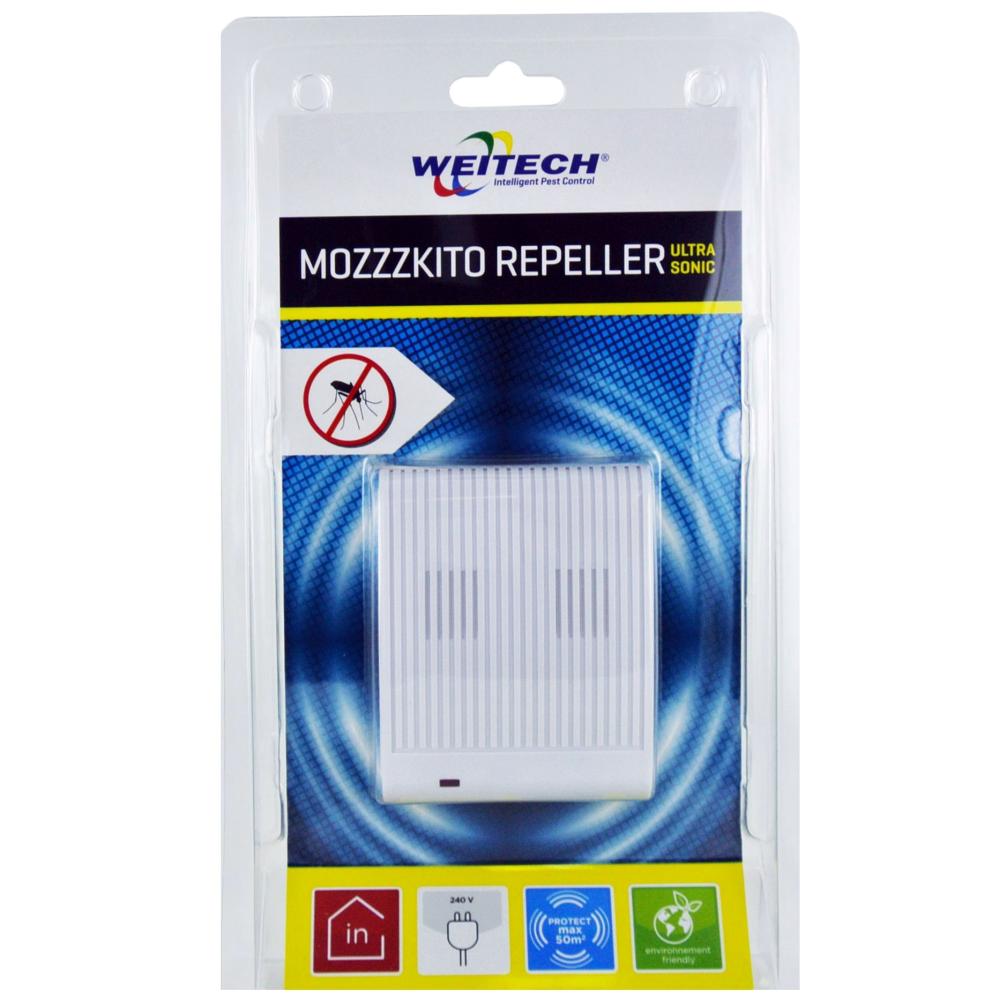 Az által riasztja el a szúnyogokat, hogy azok nem tudnak alkalmazkodni a folyamatosan változó ultrahangjelekhez, melyet a készülék kibocsát. A környezet ellenségessé és kényelmetlenné válik számukra, ezért elhagyják a területet. Független laboratóriumi tesztek bizonyítják a Weitech technológia hatékonyságát a kártevők távol tartására. Az ultrahang (20 000 Hz feletti hangok) emberek és a legtöbb állat számára alig hallható. Az ultrahang nem hatol át a falakon. A jelek visszapattannak a kemény felületekről – gellert kapó effektust okozva. A lágy anyagok, mint szőnyeg, függöny, bútor elnyelik az ultrahangot, mely csökkentheti az egység hatékonyságát. A legjobb eredmény érdekében, ne helyezze bútor, függöny, stb. mögé. Egyszerűen helyezzük a szúnyogriasztó készüléket bármely konnektorba. A készülék automatikusan működésbe lép, melyet a világító LED is jelez. A készülékhez nem szükséges karbantartás, vagy újratöltés. Működtesse a készüléket folyamatosan, amennyiben szükséges alkalmanként helyezze át másik konnektorba. A legjobb eredmény érdekében helyezzen el külön készülékeket az egymás melletti szobákba és az emeletekre. Két hét után várható eredmény. További használata megakadályozza a kártevők visszatelepülését. A termékek nem jelentenek veszélyt, emberekre, magzatokra és a nem rágcsáló háziállatok számára, mint a kutya, macska, madár és csúszó-mászó.
