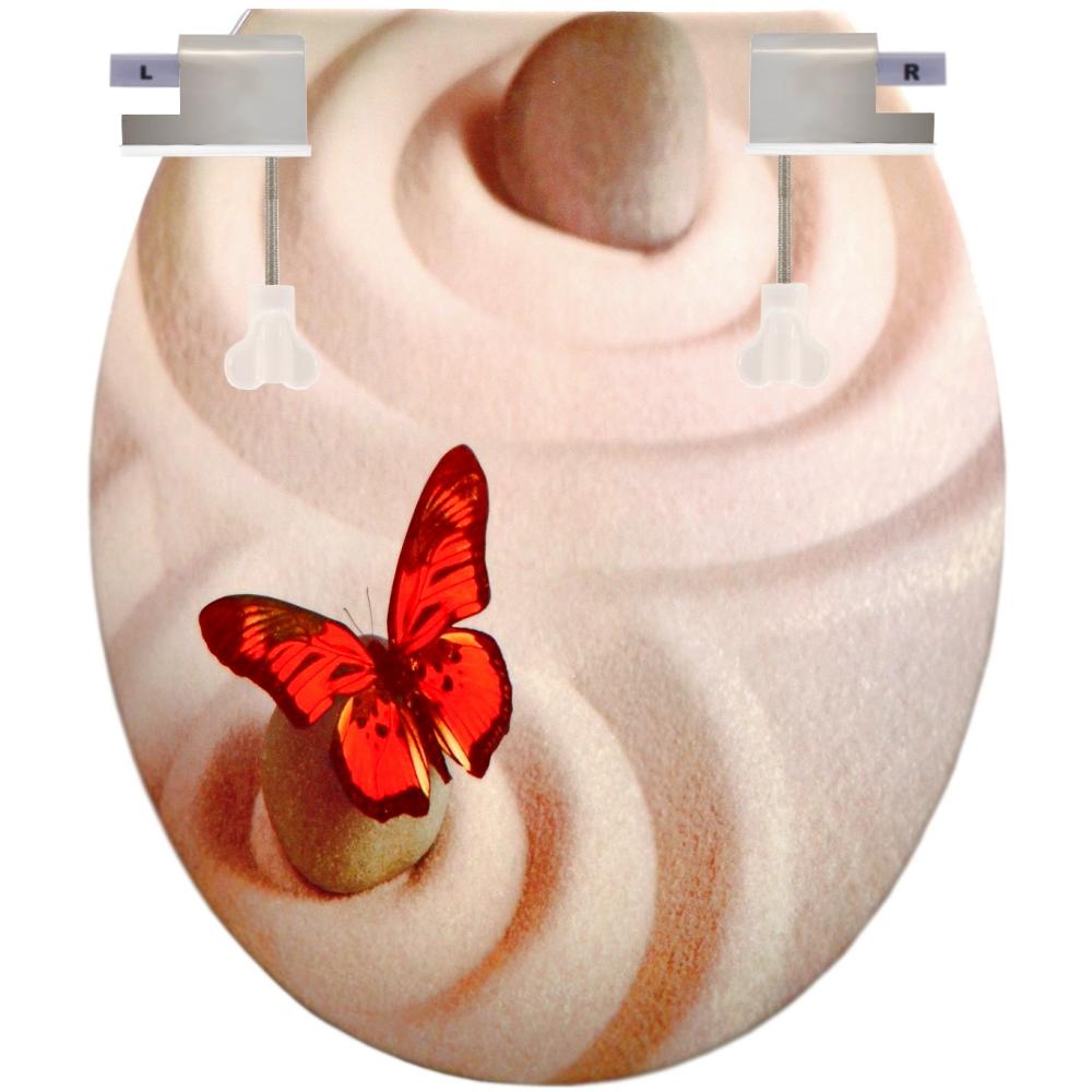 WC tető minta: Bézs - Piros pillangó - alsó ülőrésze fehér