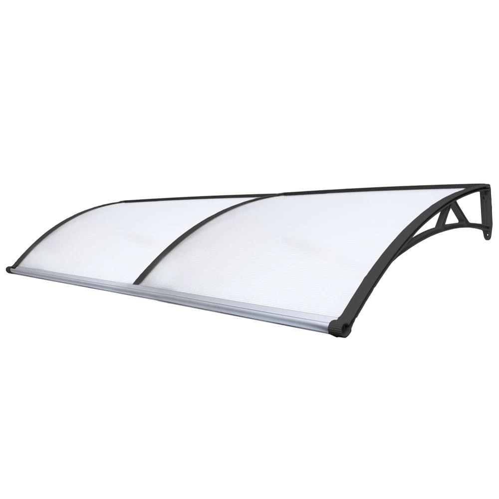 Ez a fehér polikarbonát előtető ideális választás, ha nagyobb nyílásokat szeretne lefedni. A három erős fekete konzol stabil tartást biztosít, amelyek akár 200 kg terhelést is elbírnak. A fehér színű tetőlap különösen előnyös azok számára, akik világosabb hatást szeretnének elérni, miközben a természetes fény beáramlik az ajtó vagy ablak környékére.