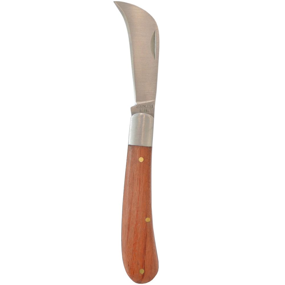 A 17 cm-es kacorkés a kertészek és hobbikertészek nélkülözhetetlen kéziszerszáma. Ívelt pengéje ideális oltáshoz, metszéshez, gyümölcsfa- és szőlőápolási feladatokhoz. A hajlított kialakítás segíti a pontos vágást és a kényelmes használatot a nehezebben hozzáférhető részeken is. A fa nyél természetes fogást és stabil irányíthatóságot biztosít, így a munka kevésbé fárasztó és pontosabb eredményt ad.