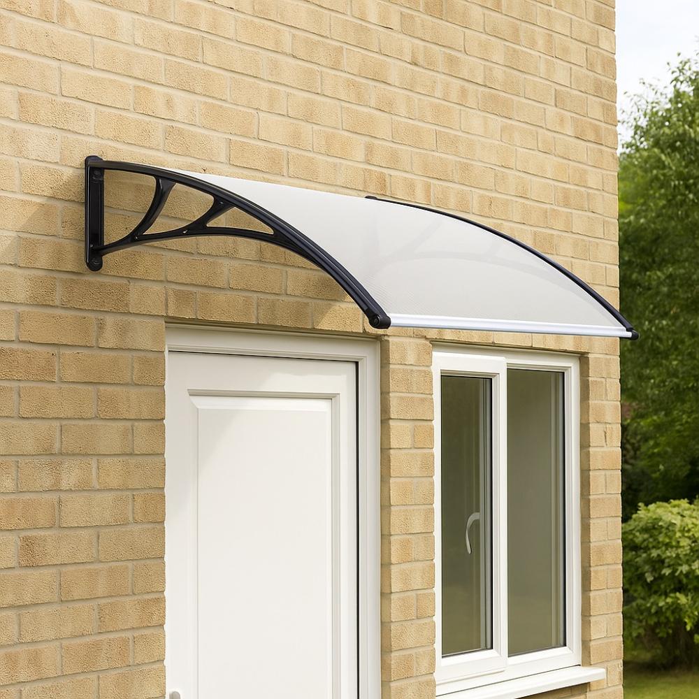 Ez a fehér polikarbonát előtető azok számára készült, akik tartós és könnyen szerelhető megoldást keresnek homlokzatuk védelmére. A fekete színű, erős műanyag konzolok stabil tartást biztosítanak, és akár 200 kg terhelést is elbírnak. A fehér tetőlap világosabb hatást kelt, így ideális olyan helyekre, ahol fontos a természetes fény beáramlása. A szerkezet korrózióálló, így hosszú évekig megőrzi minőségét.