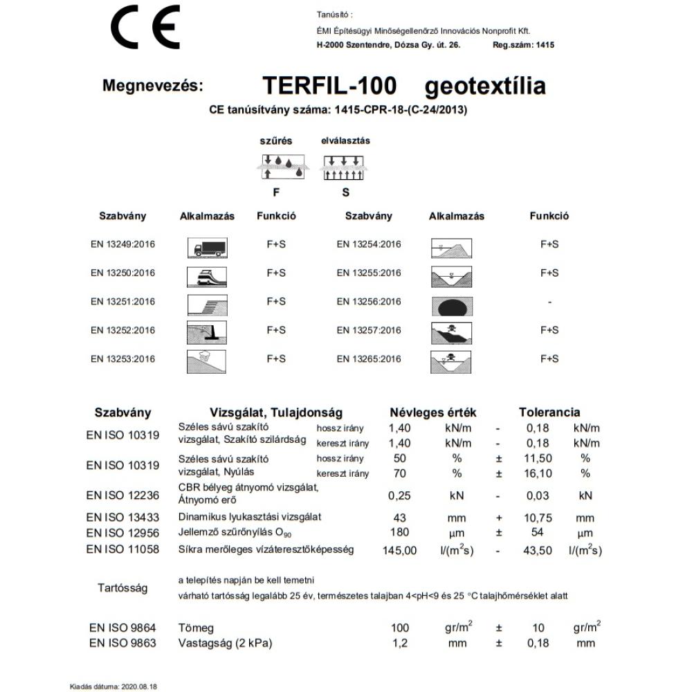 • Anyag: "PP" hőkezelt geo-filc (UV stabil)