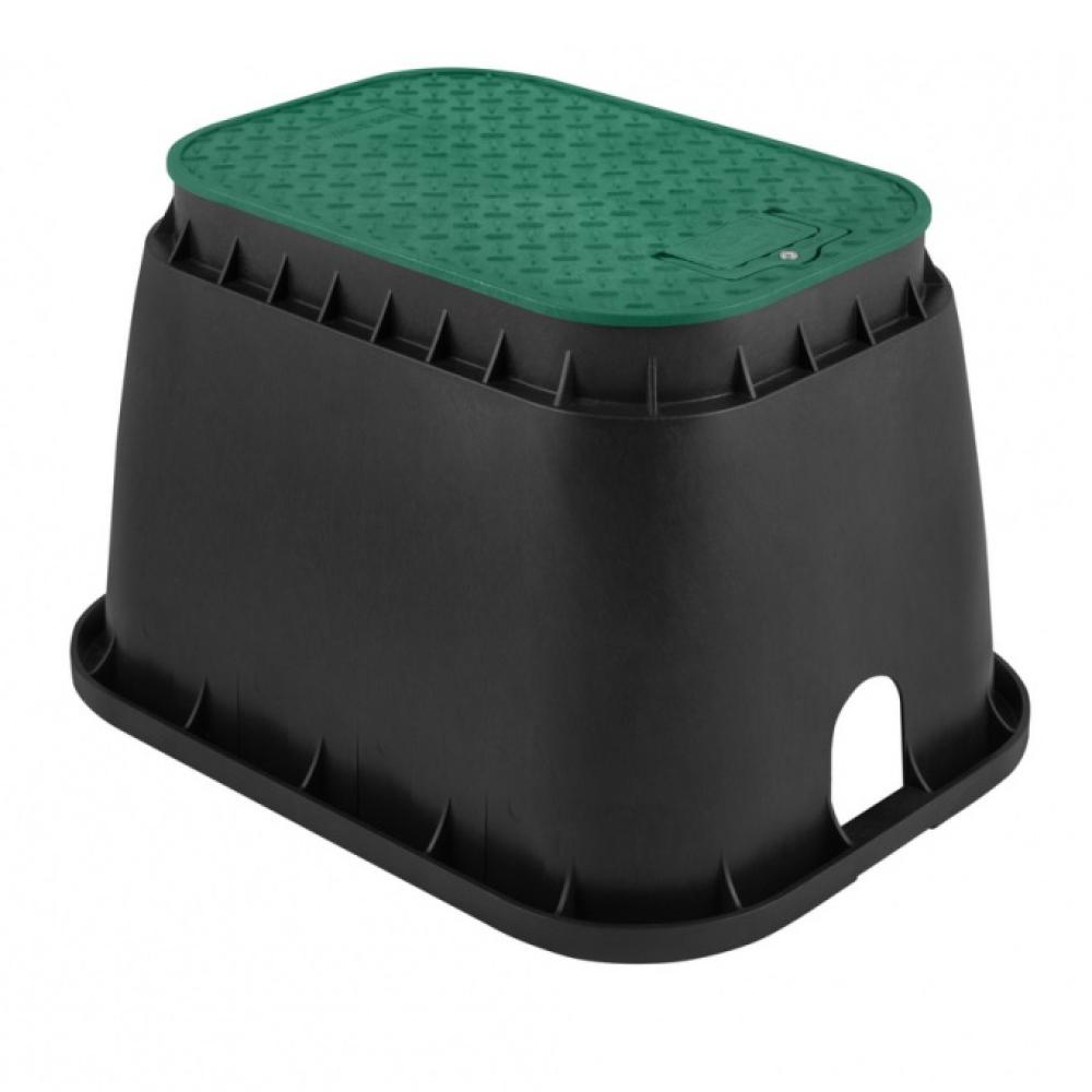 Szögletes szelepakna telepítés után teljesen beleolvad a fűvesítet zöld környezetbe. A zöld színű taposásálló aknafedél védelmet nyújt az öntözéstechnia központi egységekre. ( Mágnesszelep, kerti csap stb.... )