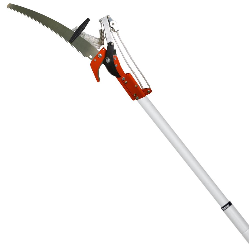 A teleszkópos nyél a hernyózó olló fűrésszel kiegészítővel együtt teljes körű megoldást nyújt a magasban található ágak eltávolításához.
