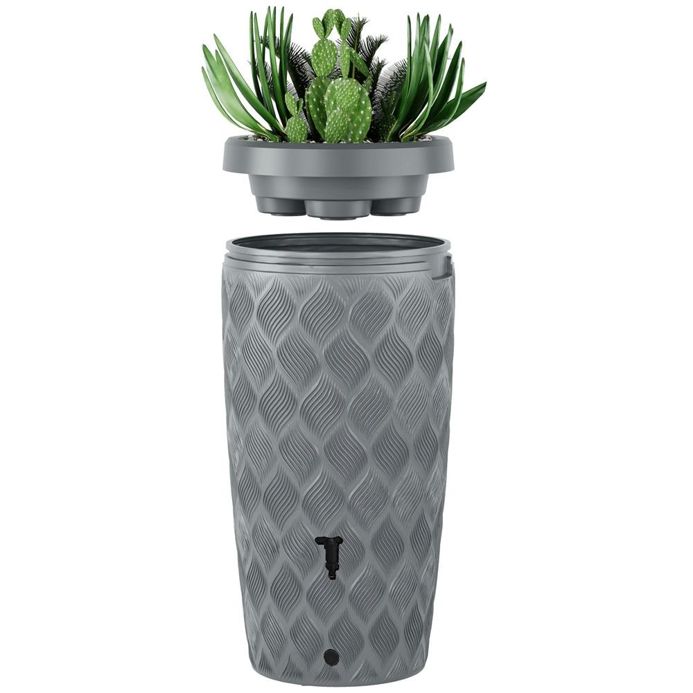 Ez a szürke színű esővízgyűjtő kaspó ideális választás azok számára, akik praktikus, modern és dekoratív megoldást keresnek a csapadékvíz gyűjtésére. 240 literes kapacitása elegendő vizet biztosít a kert öntözéséhez, miközben hozzájárul a vízfogyasztás csökkentéséhez és a költségek mérsékléséhez.