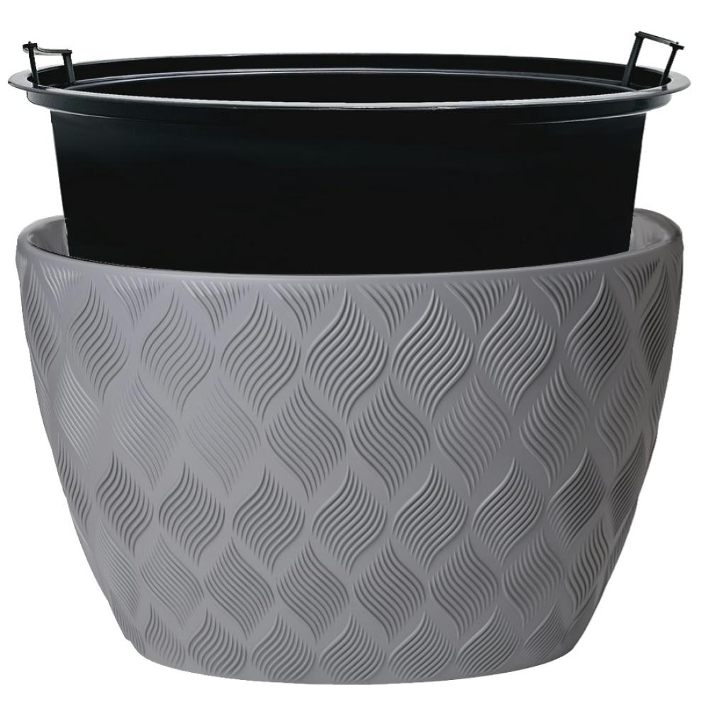 Ez a szürke kaspó 85 literes testtel és 27 literes kivehető ültetővödörrel rendelkezik, amely megkönnyíti a növények ültetését és gondozását. Az UV stabil polietilén műanyagból készült edény tartós, ellenáll az időjárás viszontagságainak, így hosszú távon megőrzi minőségét. Dombormintás felülete és elipszis formája modern, elegáns megjelenést biztosít, így beltéri és kültéri környezetben is remek választás.