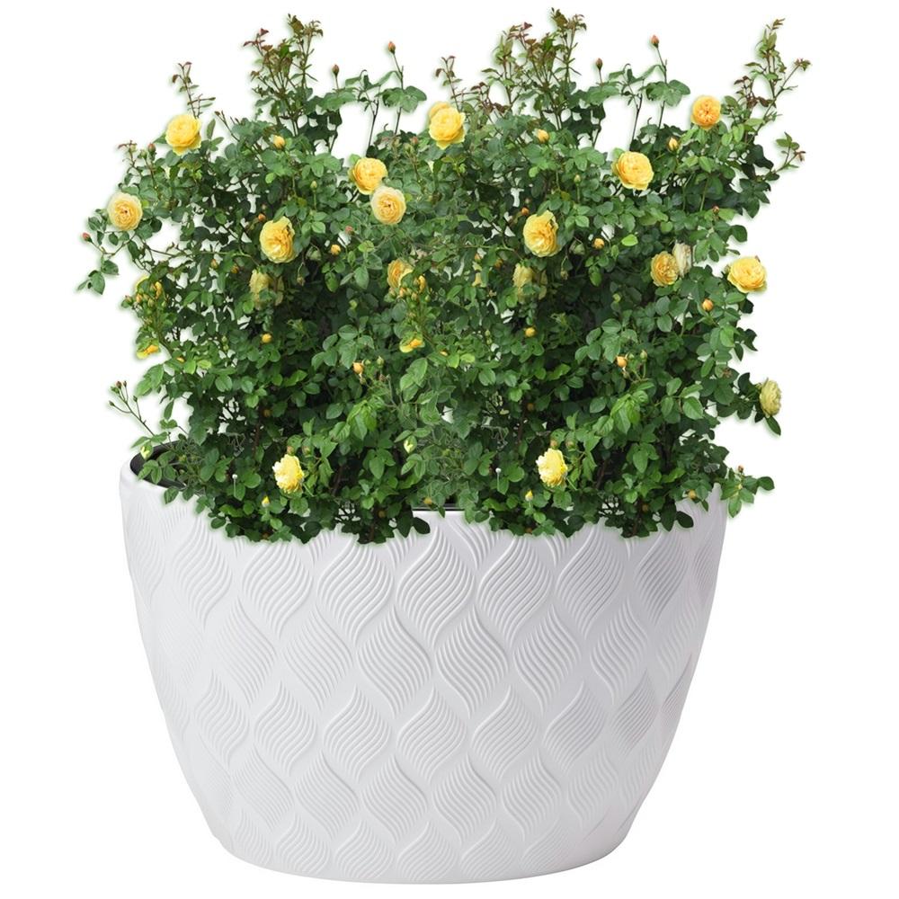 Ez a prémium minőségű fehér kaspó 85 literes testtel és 27 literes kivehető ültetővödörrel rendelkezik, amely megkönnyíti a növények gondozását és ültetését. Az UV stabil polietilén műanyagból készült edény időtálló, ellenáll az UV-sugárzásnak, a fagynak és más időjárási viszontagságoknak. Modern, elipszis formájú kialakítása elegáns megjelenést biztosít otthonában, teraszán vagy kertjében egyaránt.