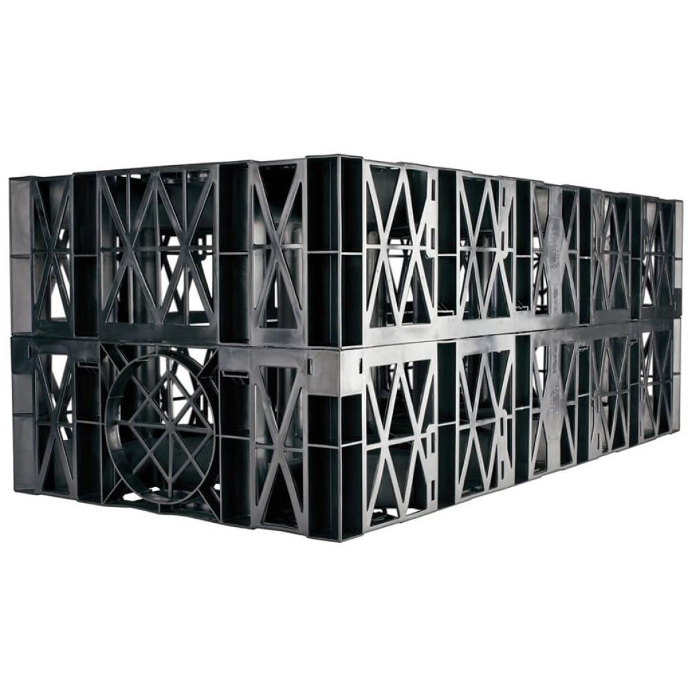 A darabszám a tető/burkolt felület nagyságától, a várható csapadékintenzitástól és a talaj vízáteresztő képességétől függ. Például egy 100 m²-es tetőn 20 mm-es zápor kb. 2 m³ vizet jelent; ez kb. 10–11 modulnyi térfogatot igényelhet. A pontos méretezéshez érdemes helyi talajvizsgálatot és tervezői számítást alapul venni.