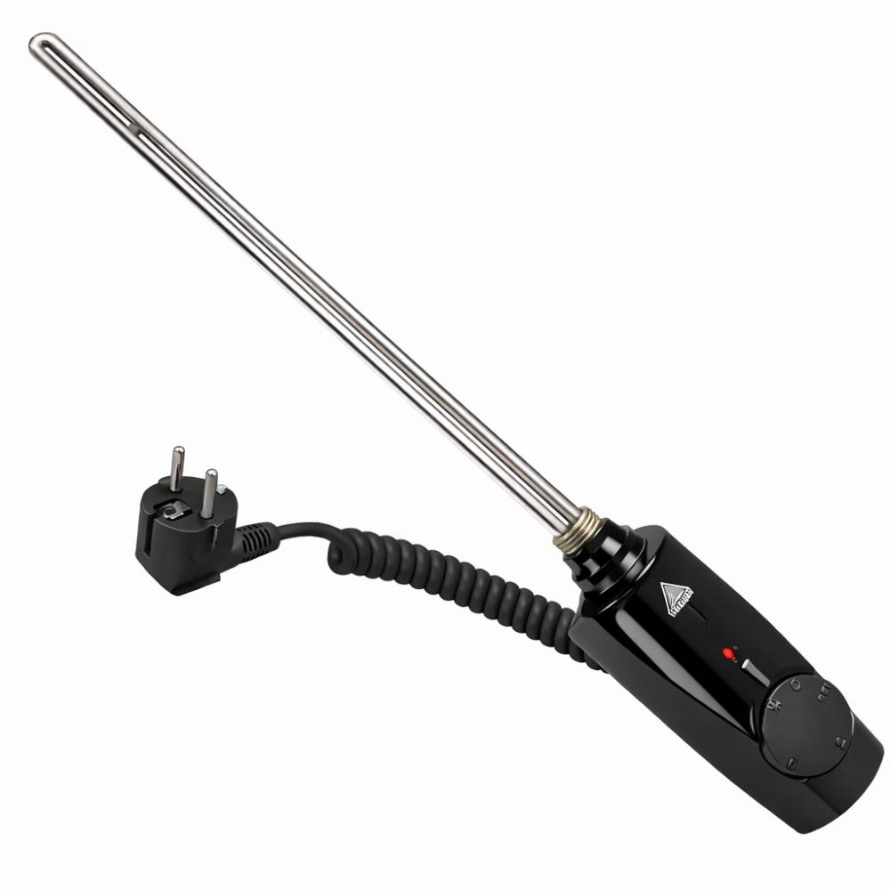 Fekete csőradiátorhoz hőszabályzos elektromos 900 W-os hálozati vízmelegítő patront. Abban az esetben, ha nincs kazán vagy központi fűtés kiépítve. A vízzel feltöltött radíátor és a fűtőpatron elegendő a helyiség befűtésére.