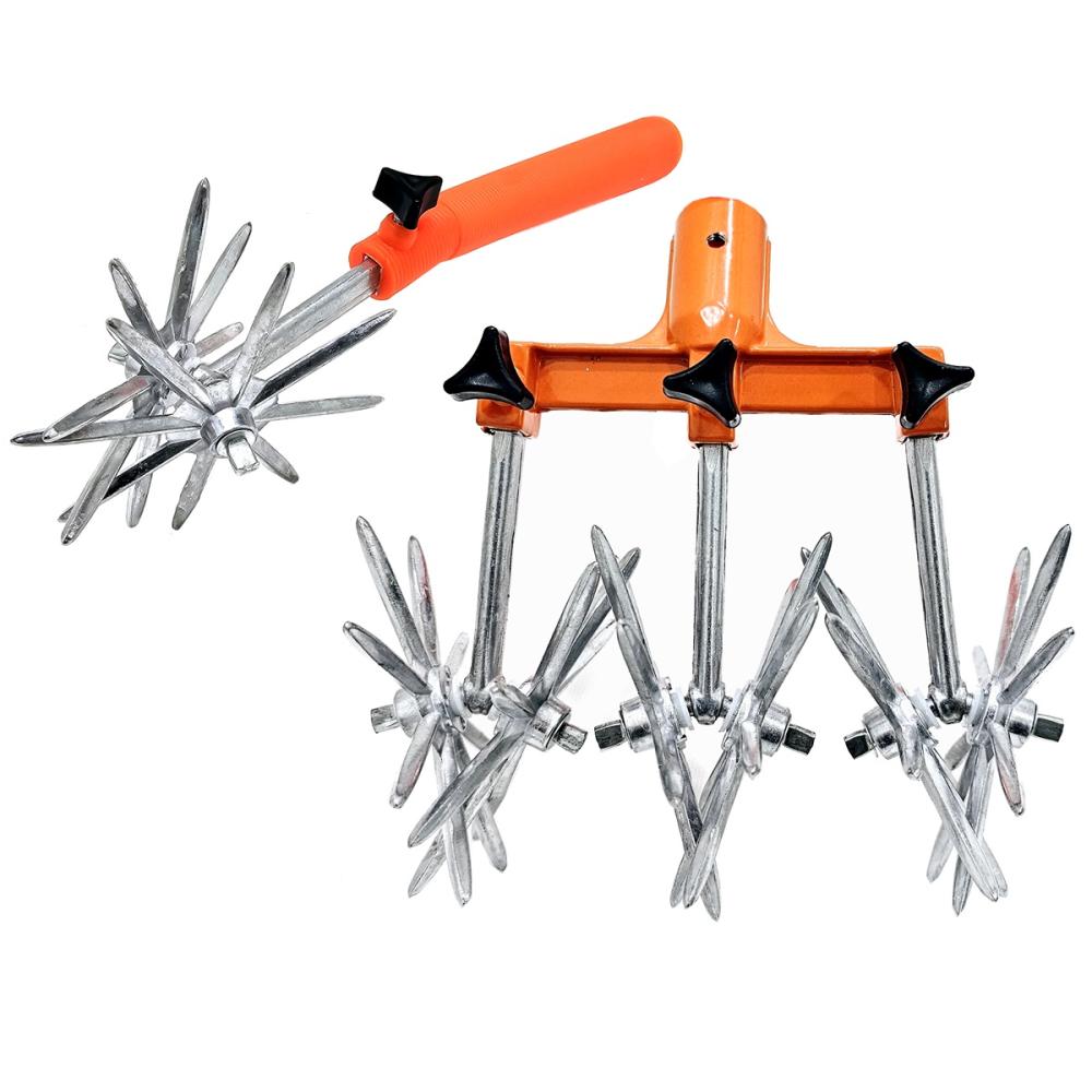A csillagfejek forgó mozgása fellazítja a talaj felső rétegét, megszünteti a kéregképződést és javítja a víz–levegő háztartást. A 18 cm-es munkaszélesség ideális kompromisszum: elég széles a gyors haladáshoz az ágyásokban, mégis kellően precíz, hogy a sorok között is hatékonyan dolgozzon. A moduláris felépítés előnye, hogy a fém csillagfejek egy mozdulattal levehetők és tisztíthatók, illetve a „solo” kézi nyélre átszerelhetők, ha szűk helyen, edényben vagy balkonládában kell dolgozni.