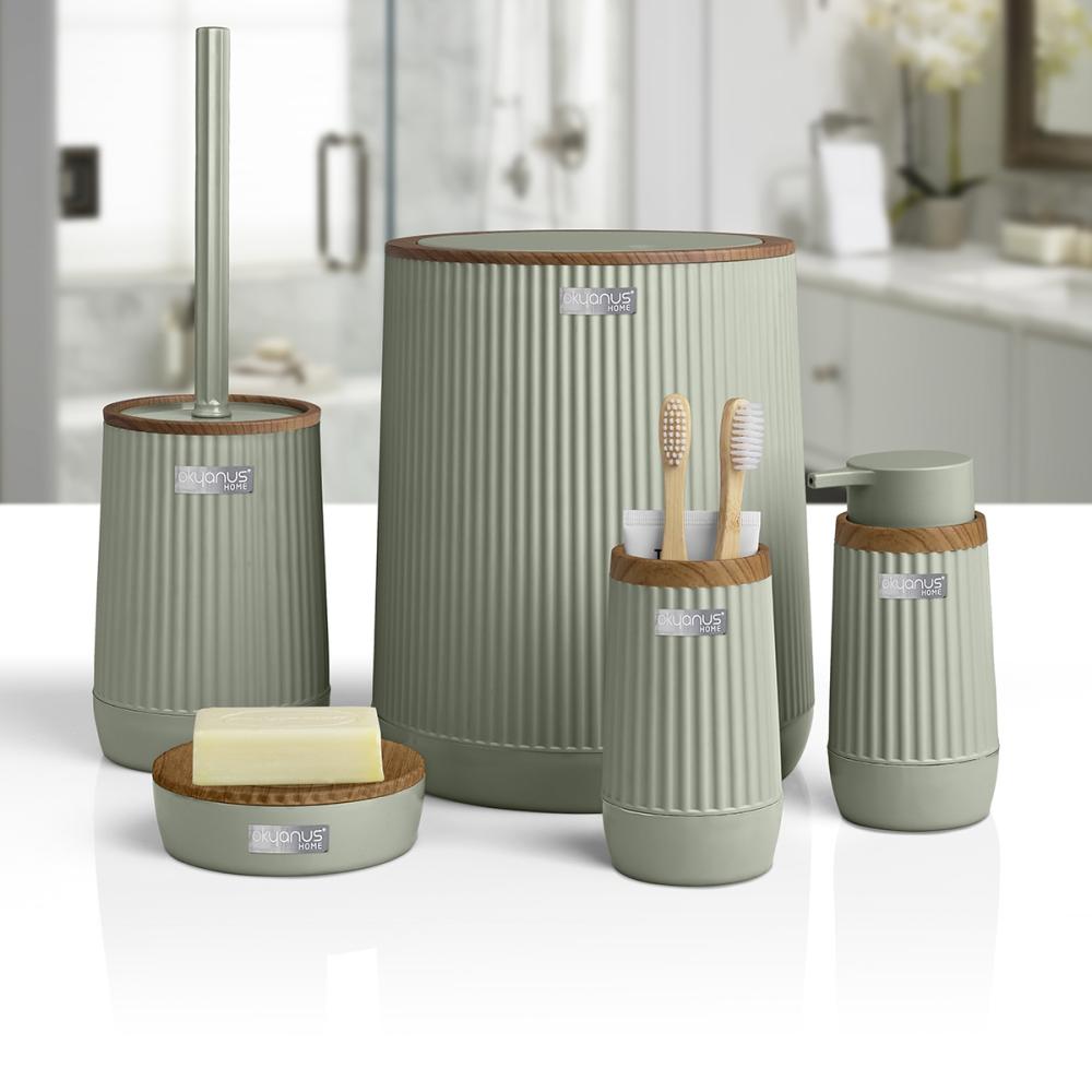 5db-os szett | Szappanadagoló | Szemeteskuka | Szappantartó | Pohár | WC kefe | OKY-385-3-Y-E