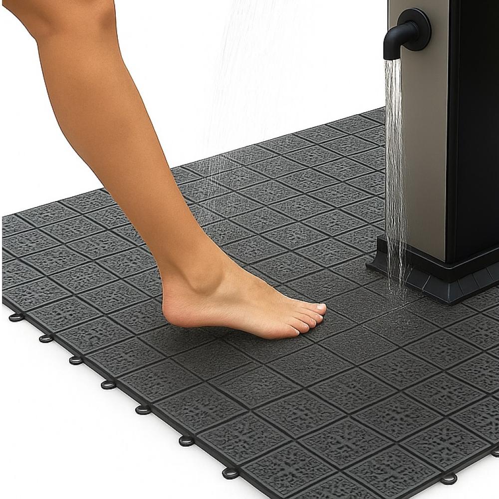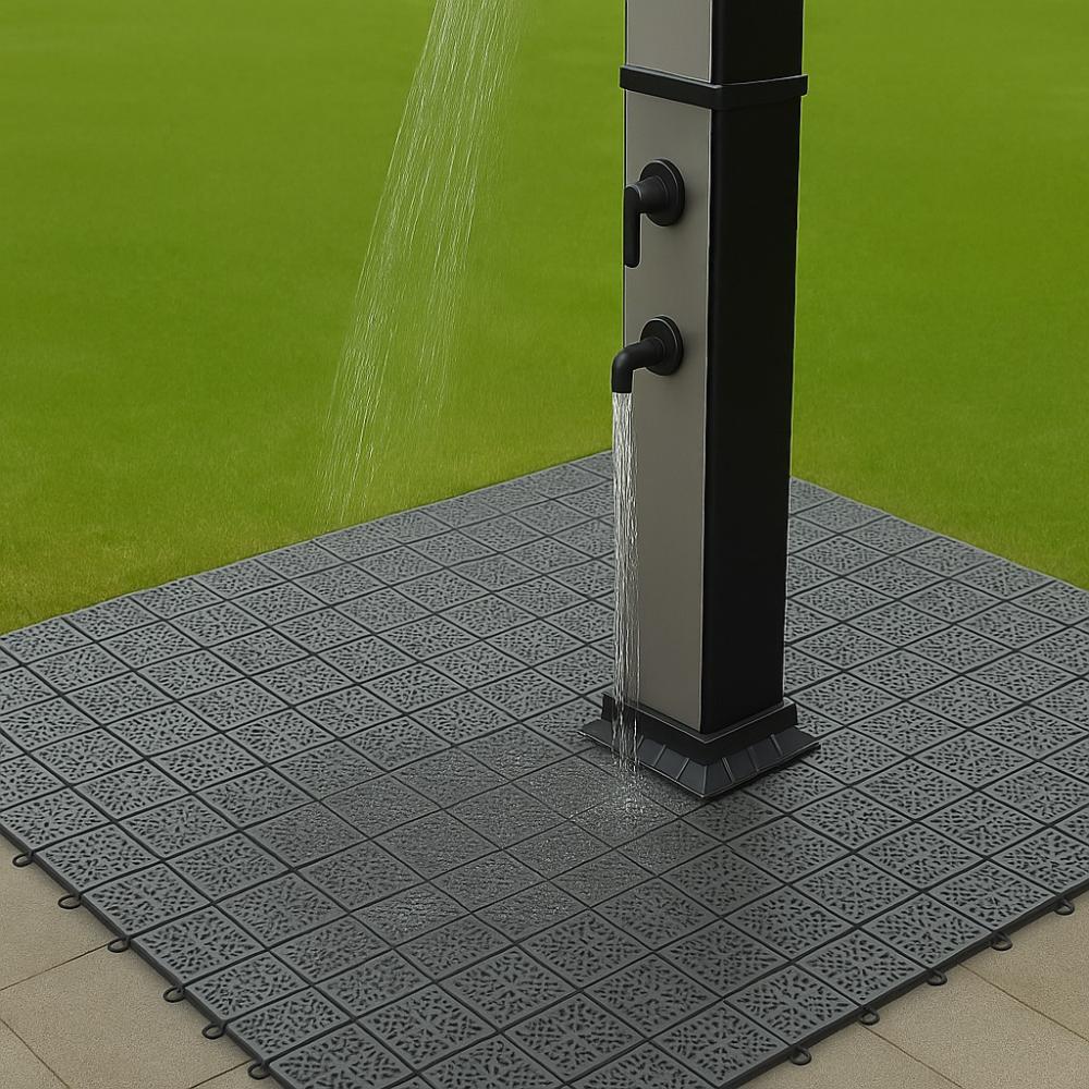Ez a strapabíró, műanyag rácslap szett ideális választás a kerti zuhanyzó alá. A csomagban található 11 db, egymáshoz egyszerűen illeszthető, 30×30 cm-es kockából 1 m² felületű stabil és átszellőző alapot alakíthatsz ki. Nem csúszik el és tiszta marad a láb, nem csapódik vissza a sár.
