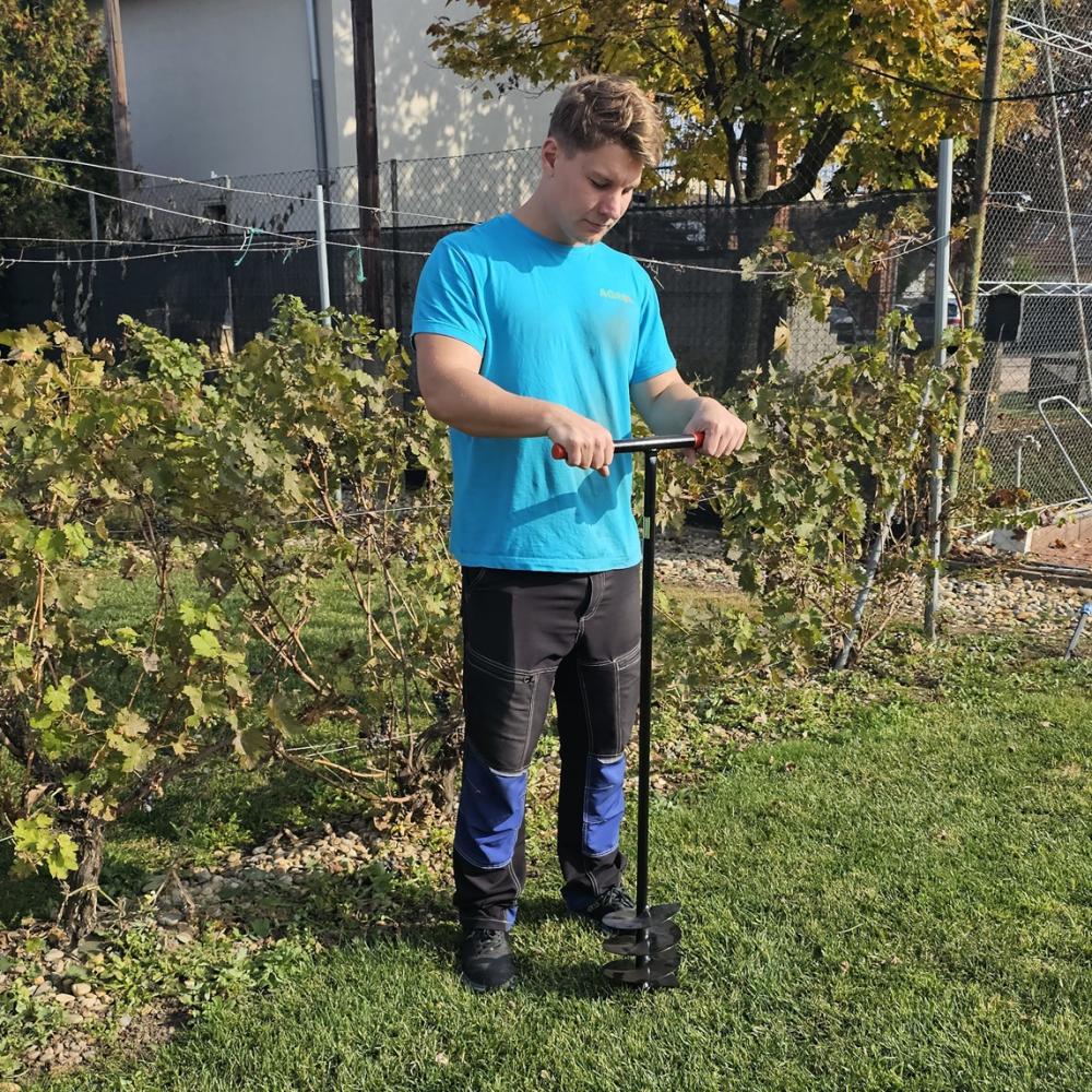 Kötöttebb, keményebb földben is alkalmazható, de sziklás vagy nagyon köves talajhoz inkább gépi talajfúrót ajánlunk.