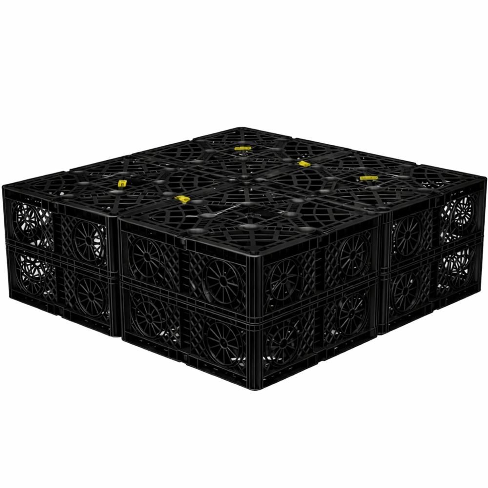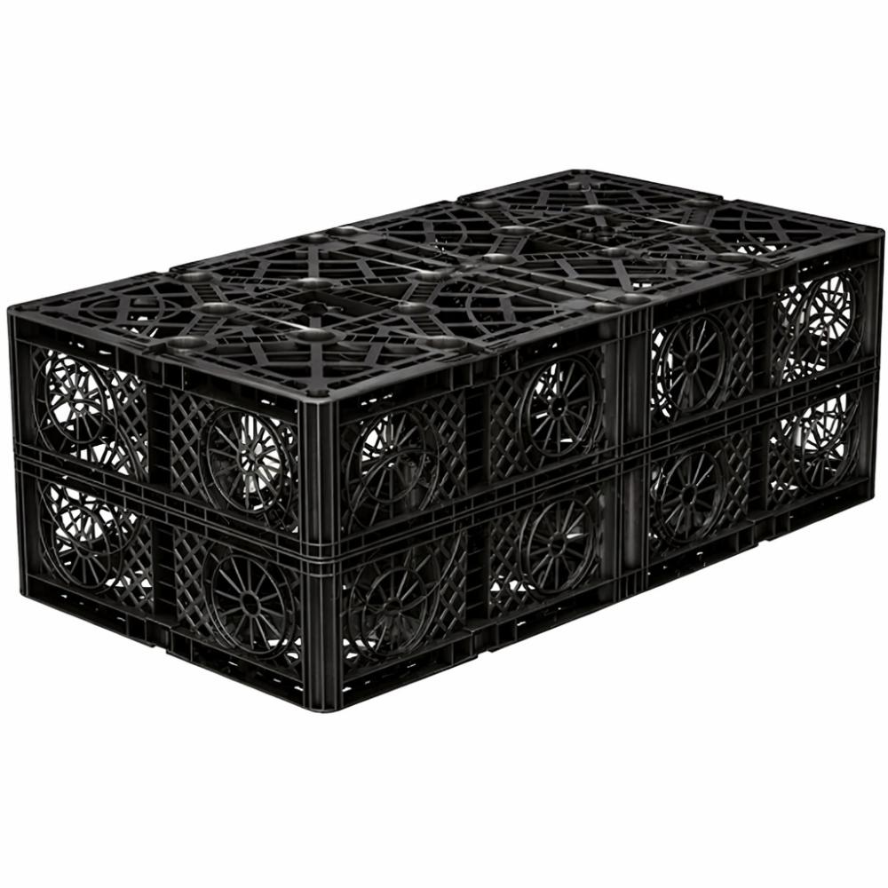 A 300 literes szikkasztó blokk kiválóan alkalmazható esővízkezelési rendszerekben, ahol fontos a nagy terhelhetőség, a tartós szerkezet és a rugalmas bővíthetőség. Parkolók, autóbeállók vagy akár forgalmasabb területek alatt is biztonságosan használható a magas, akár 60 tonnás teherbírásnak köszönhetően.