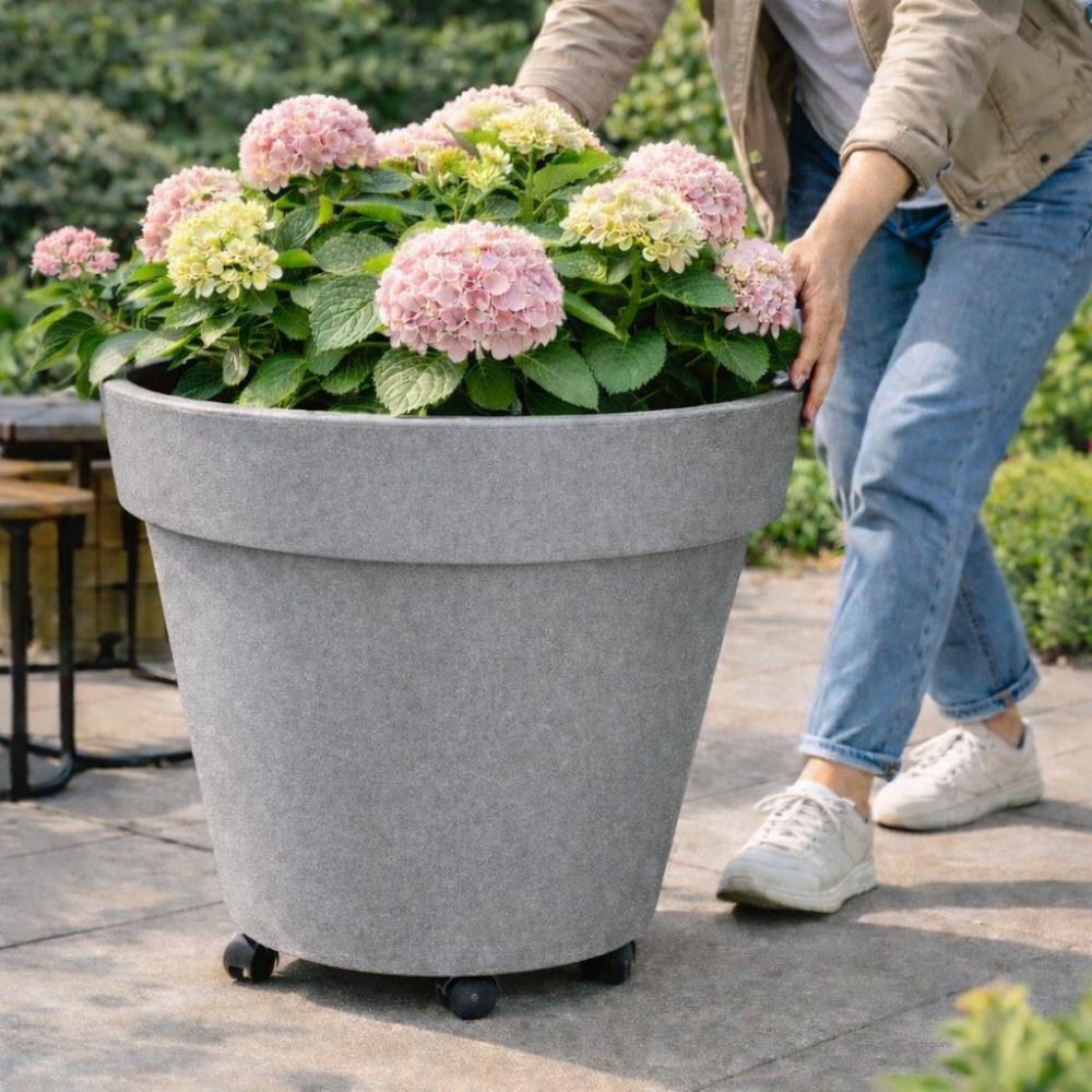 A kaspóhoz tartozó belső ültetőbetét megemeli a föld szintjét, javítja a vízelvezetést, és lehetővé teszi, hogy kevesebb ültetőközeggel is stabilan és egészségesen fejlődhessenek a növények. A kerekek megkönnyítik a kaspó mozgatását.
